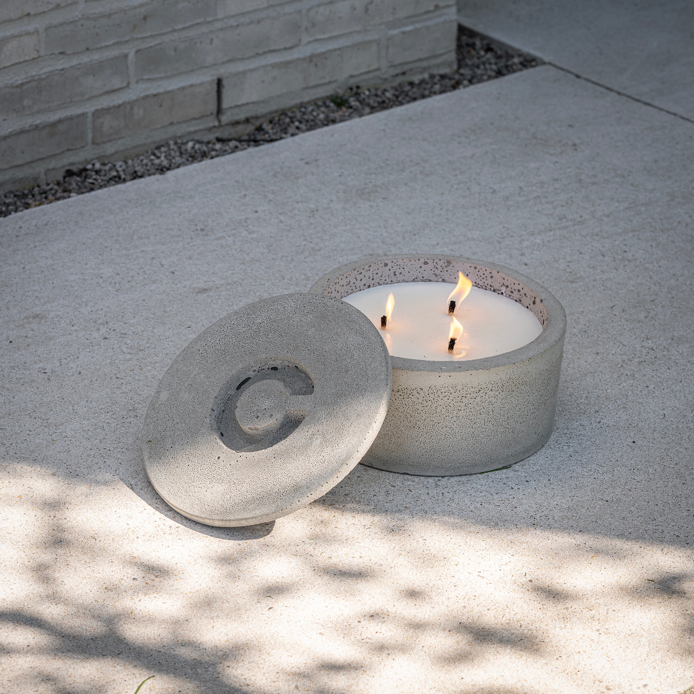 Geniet van onze duurzame kaarsen in betonnen houders met verfijnde geuren die in elk interieur passen.