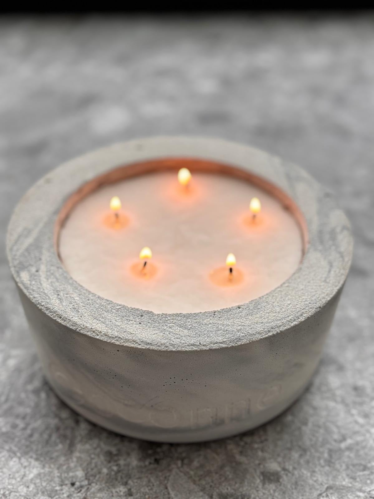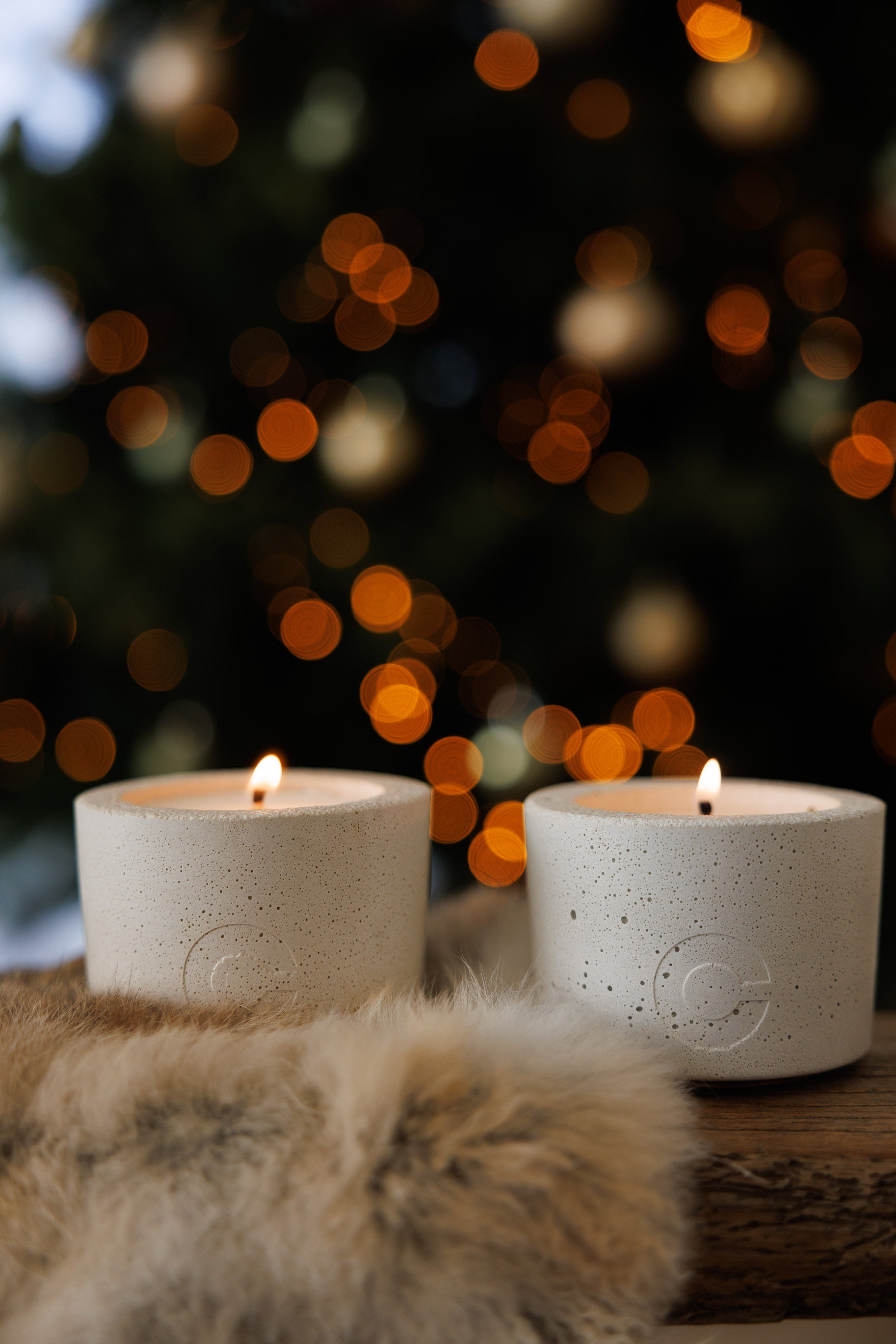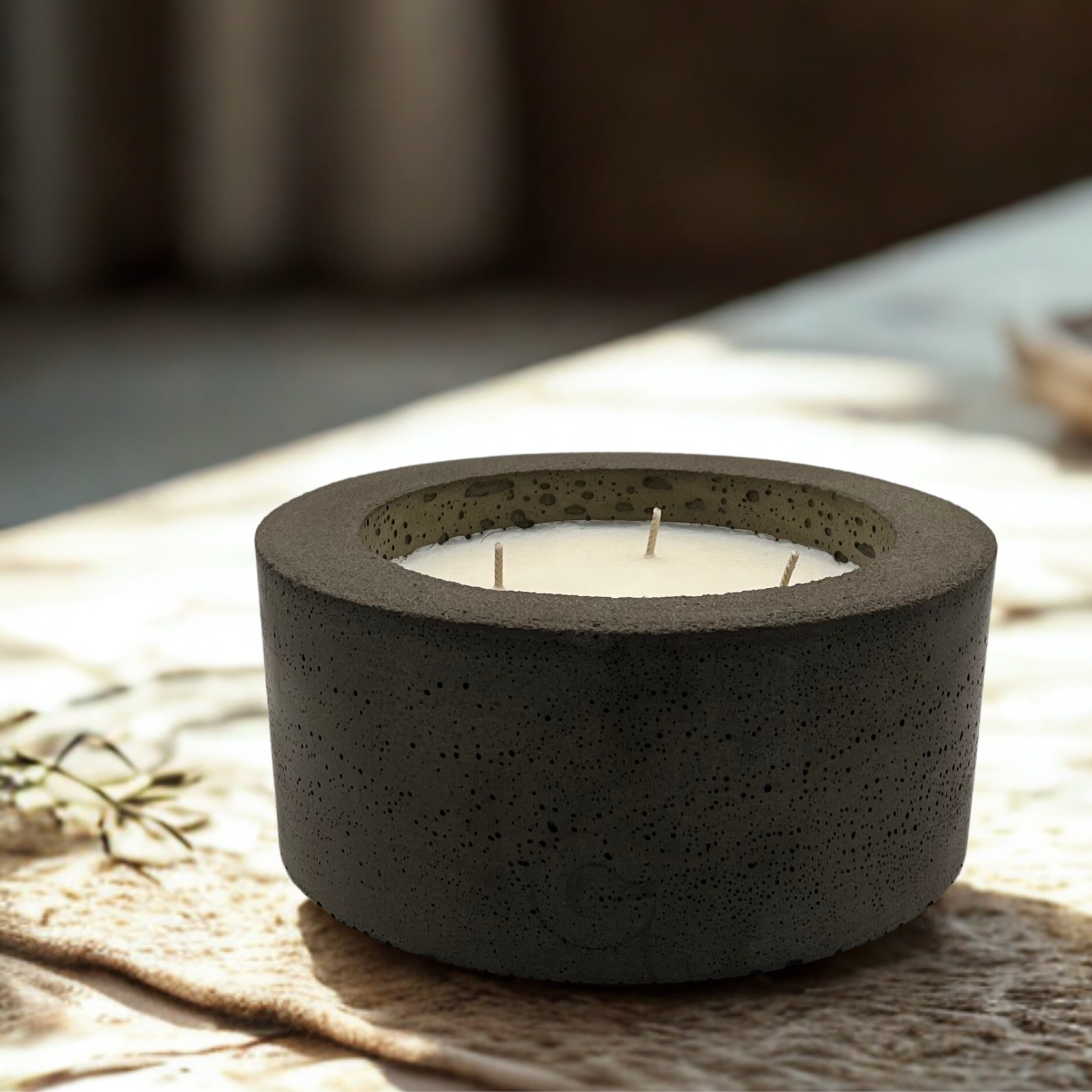 Geniet van onze duurzame kaarsen in betonnen houders met verfijnde geuren die in elk interieur passen.