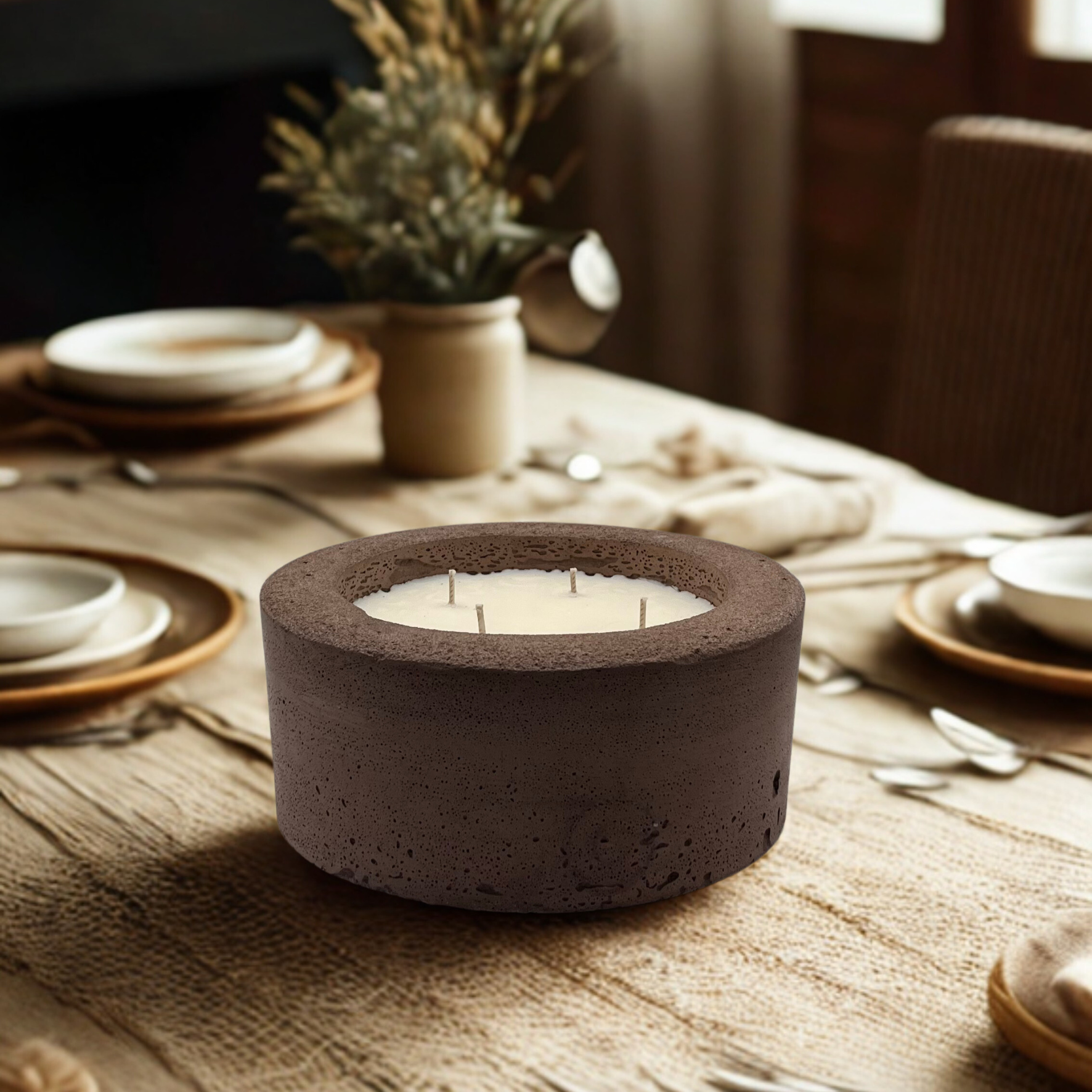 Ontdek het grootste stuk van onze betonnen kaarsenpotcollectie 'Perth' met de verfijnde geur 'Urban Spices'. De combinatie van de ruwe textuur van beton en de warme, zachte lijnen van het design maken de kaars tot een tijdloos stuk dat past bij elk interieur.