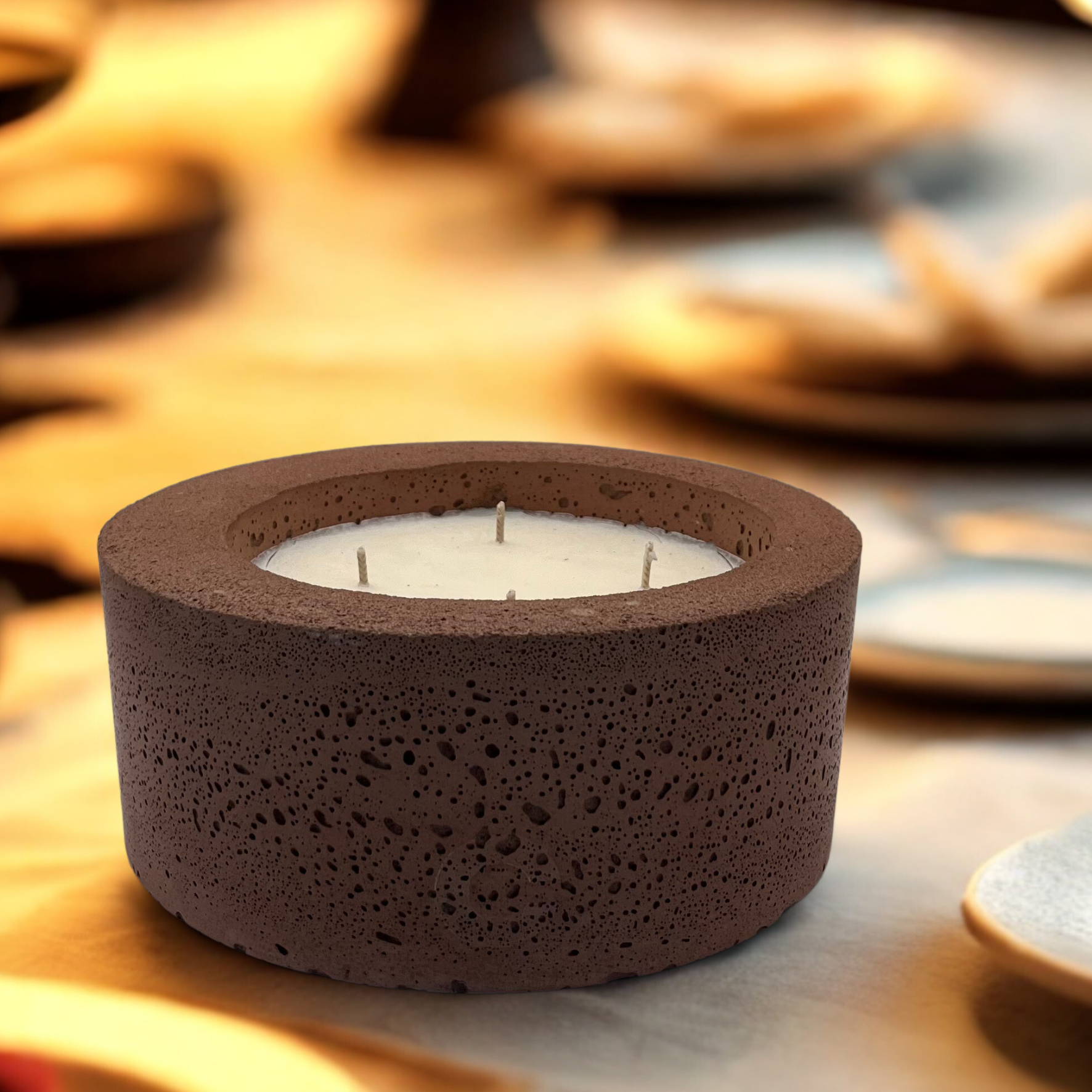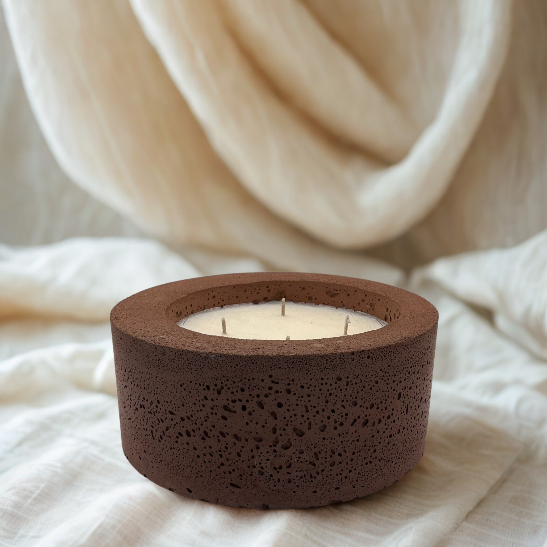 Ontdek het grootste stuk van onze betonnen kaarsenpotcollectie 'Perth' met vijf lonten en de verfijnde geur 'Urban Spices'. De combinatie van de ruwe textuur van beton en de warme, zachte lijnen van het design maken de kaars tot een tijdloos stuk dat past bij elk interieur.
